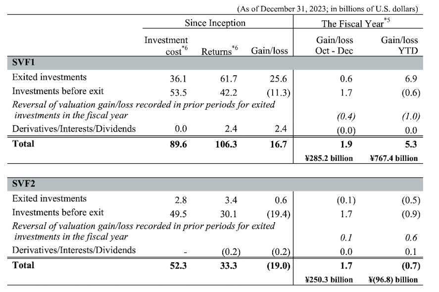 從收益來看,成立以來,SVF1總投資896億美元,累計回報1063億美元,盈利167億美元;SVF2總投資523億美元,累計回報333億美元,虧損為190億美元。
