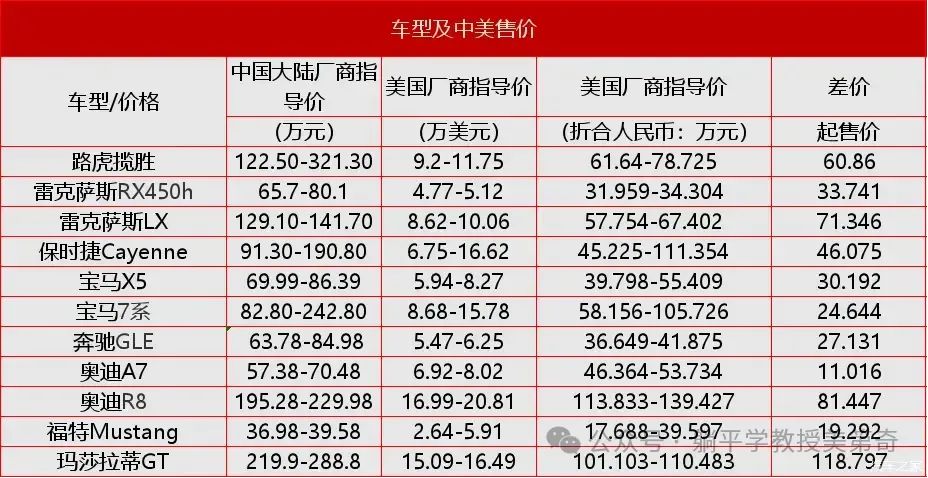 很早以前,就有人説,中國豪車太貴的主因,是因為對豪車設置了高額的進口關税。實際上,中美兩國豪車的價格也的確天差地別。