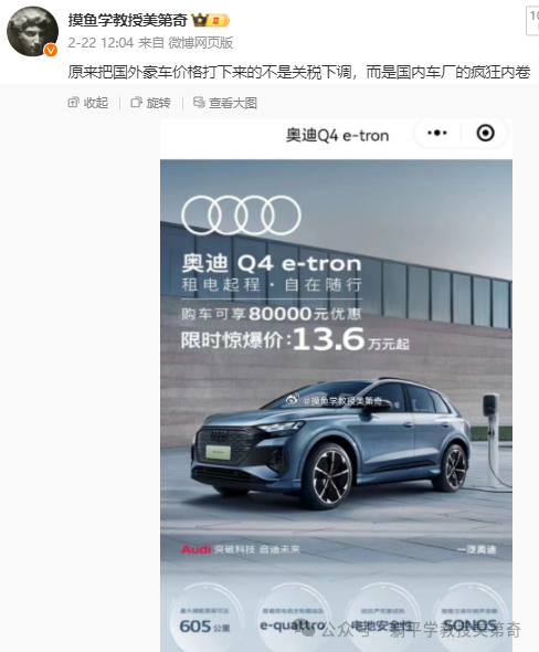先是奧迪Q4把價格打到了13.6萬,然後是凱迪拉克,年前還三十多萬的,年後直接降了四分之一。