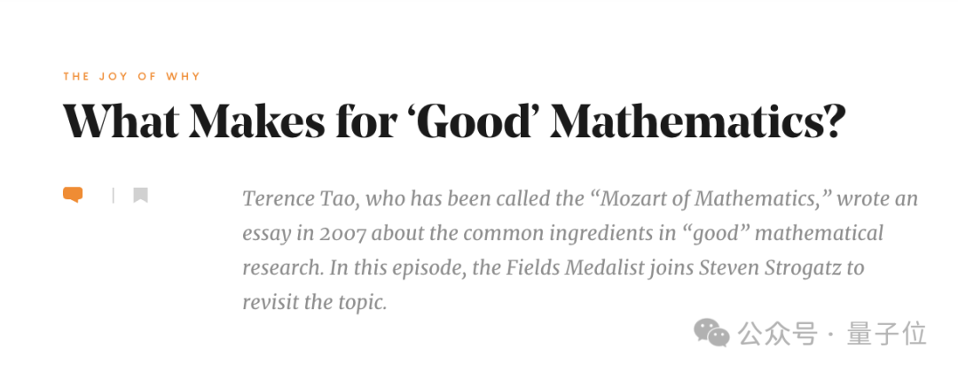 除此之外,他還談到了數學本質、 “好的”數學研究的構成要素,以及如何應對新技術的出現。