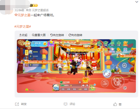 昨天在元宵這個年味尾巴的重要閤家歡節日裏,《元夢之星》再登央視,遊戲的“星夢廣場”上也放置了大屏同步播放央視元宵晚會,並與現實晚會同步猜燈謎互動,讓元宵的節日氛圍拉到了頂端。
