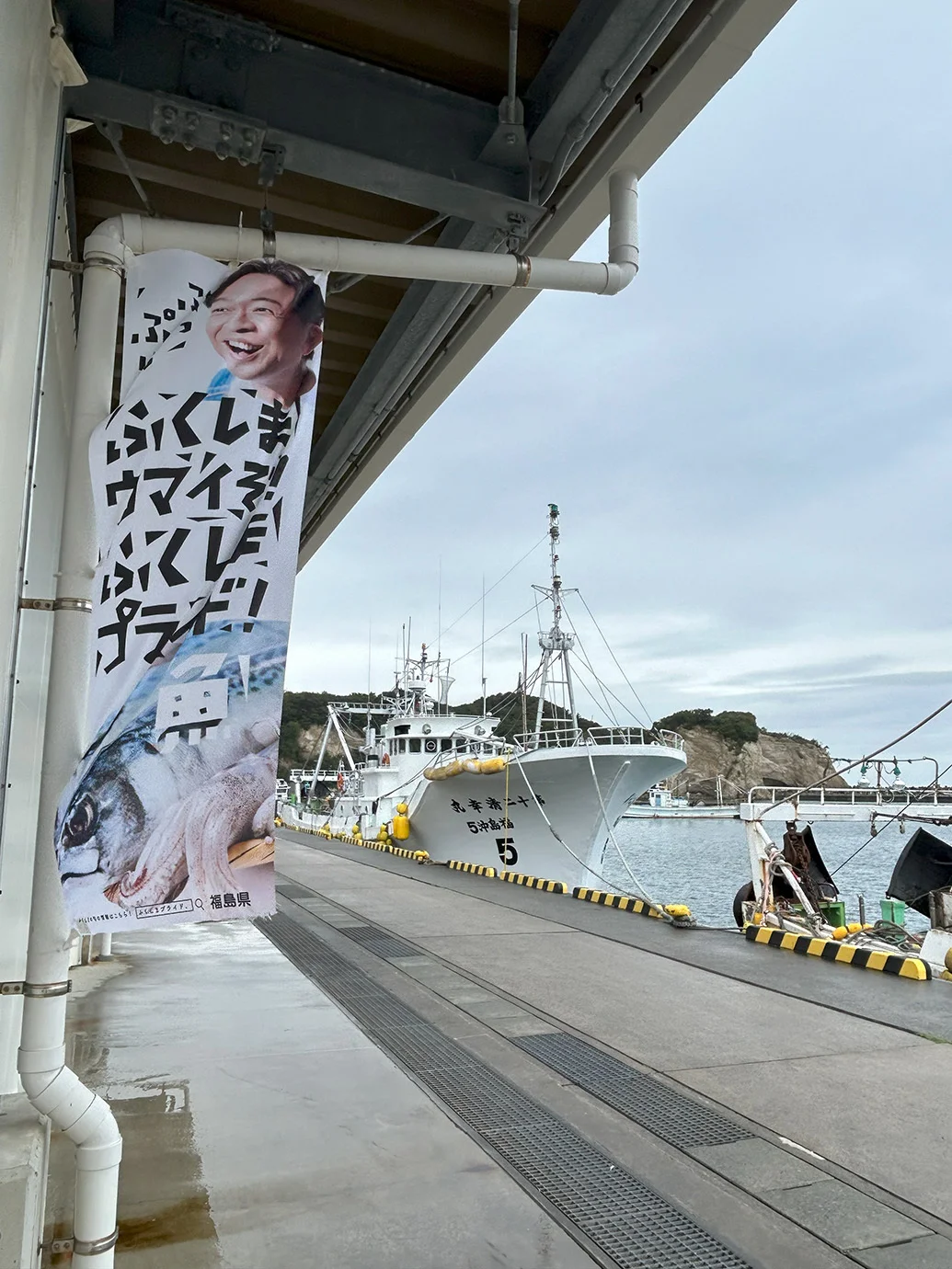 福島縣久之浜漁港掛着宣傳橫幅“福島,美味!福島,驕傲!魚!”