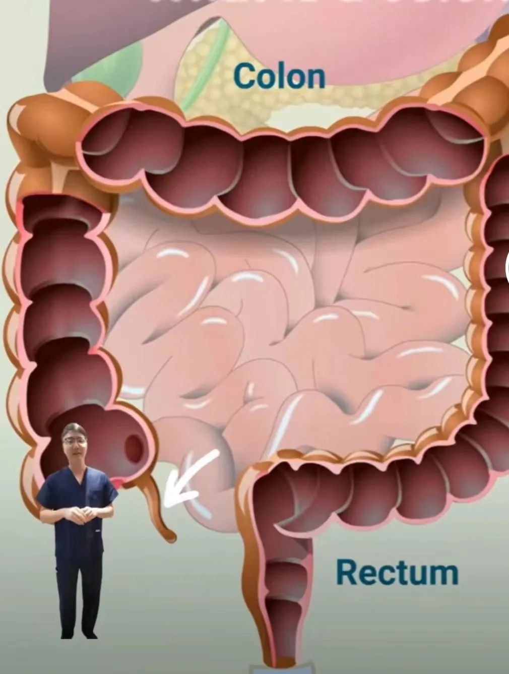 2023年8月的一則視頻裏,白辰甚至嘗試了科普與動漫結合的形式。他本人的卡通形象被“摳”出來,縮小,置入腸道“迷宮”中。觀眾們則跟着腸鏡,逐個認識盲腸、升結腸、橫結腸、小腸,瞭解各個位置潛在的疾病風險。