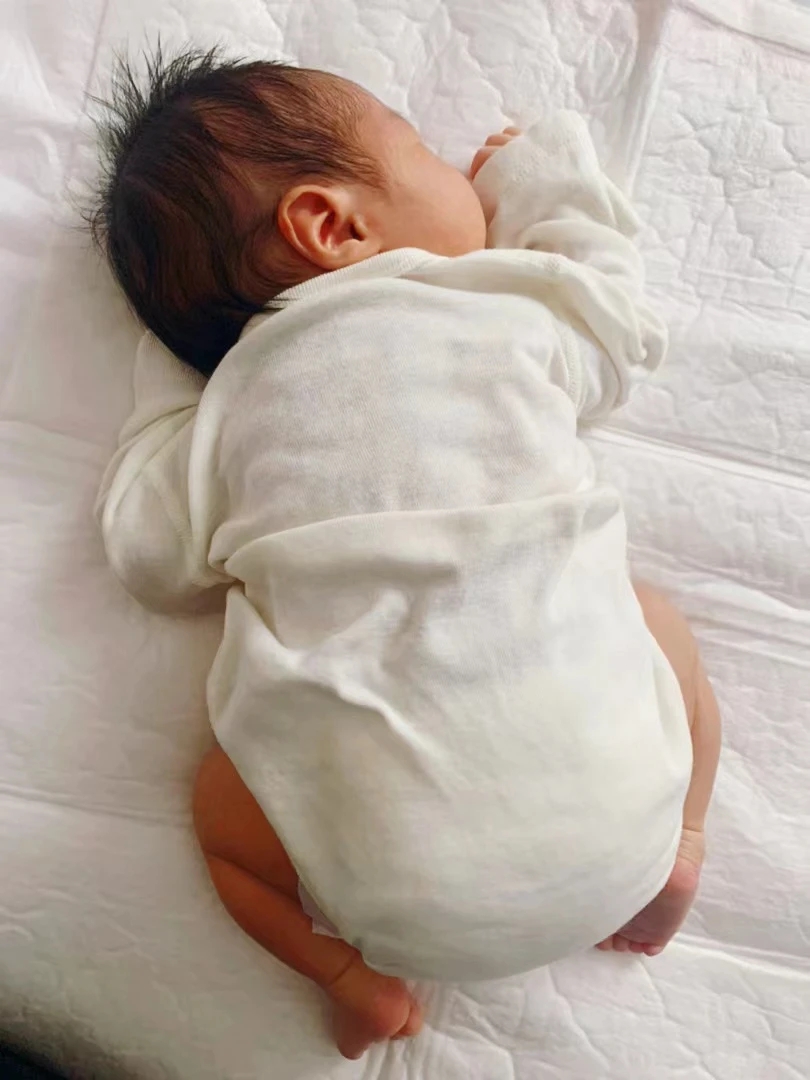 噢,是噢,想起來新生兒一天要睡20小時,三年多前,妹妹也是這樣,躺在襁褓裏,大部分照片都閉着眼睛。同學給我發一張新生兒游泳的照片,又點亮我的一部分記憶。在月子中心,我也是跟她一樣,站在水池邊,眉眼帶笑,拿着手機一頓猛拍。