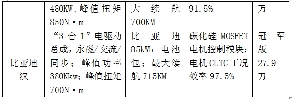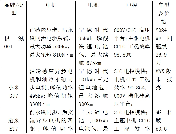 表:極氪001、小米SU7、蔚來ET7、比亞迪漢“三電”對比
