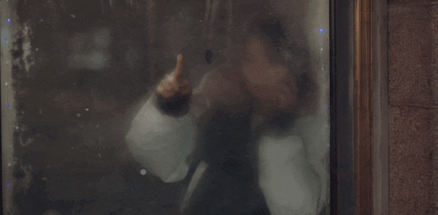 在佈滿窗户的水霧上畫上一個可可愛愛的哭臉。