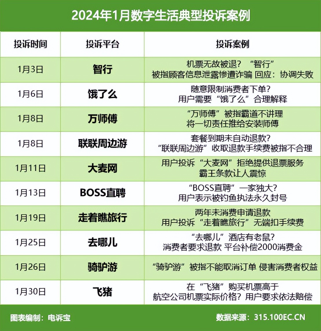 智行 餓了麼 萬師傅 聯聯周邊遊等入選1月數字生活十大典型投訴案例_風聞