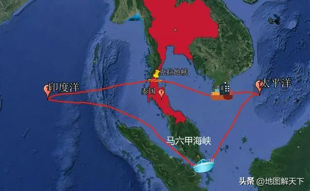 這些年,隨着海上貿易運輸的頻繁,新加坡、馬來西亞、印尼三個國家守着馬六甲賺的是盆滿缽滿。雖然泰國也靠近馬六甲,但泰國卻是連喝湯的機會都沒有。我們在地圖可以看到。泰國的版圖就像大象的腦袋,而“象鼻”處就是分離太平洋與印度洋的關鍵所在。