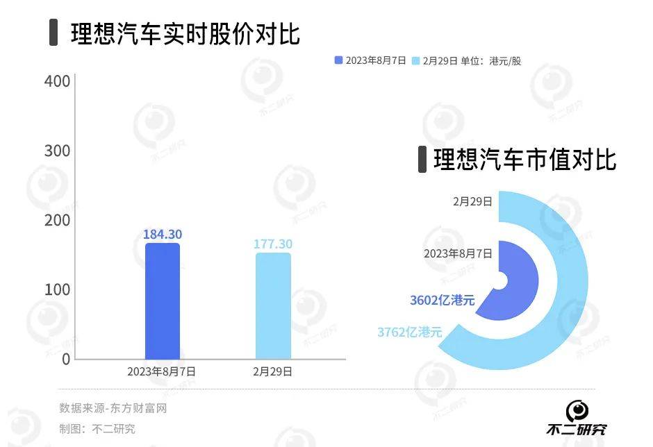截至2月29日港股收盤,理想汽車報收177.30港元/股,對應市值3762億港元(約摺合人民幣3457.84億元;對比2023年8月的市值高點3602.05億港元,其市值已經漲超160億港元(約摺合人民幣147億)。