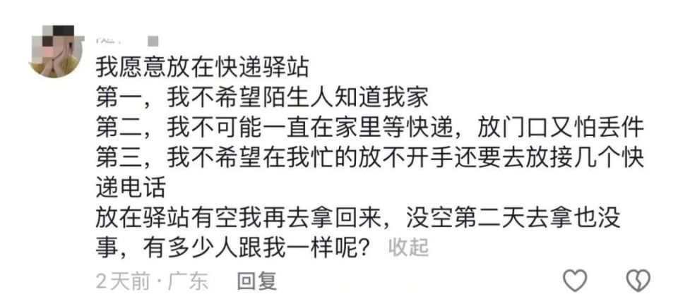 與李睿有類似想法的人不在少數,在社交平台相關話題的評論區,有不少網友覺得“驛站”“快遞櫃”更方便。