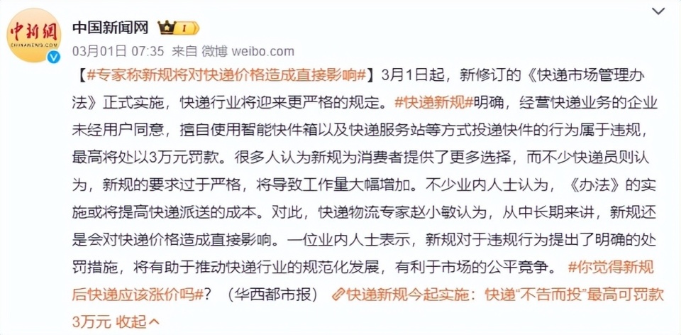 有不少業內人士認為,相關新規的實施,或將提高快遞派送的成本。