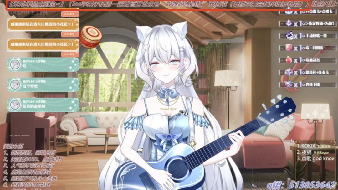 大家目前能瞭解的信息是,虛擬主播在直播時的收入,主要分成三個部分。第一是傳統的虛擬禮物,也就是耳熟能詳的 “ 感謝老闆送的一發超火 ” 。