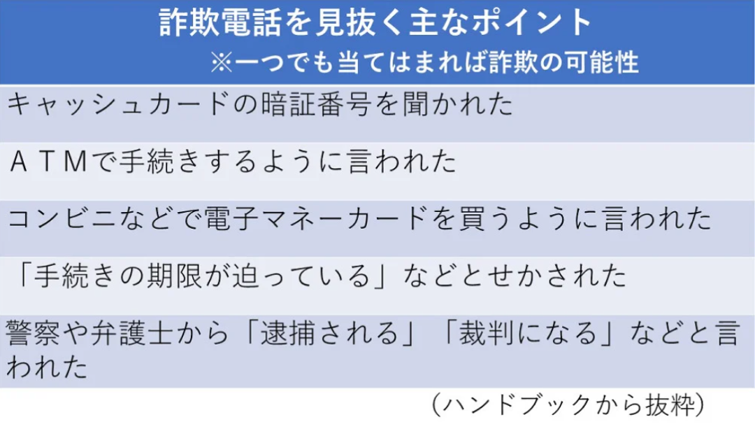 像“詢問你的銀行卡密碼”、“要你去ATM辦某種特定的手續”、“要你去便利店之類的地方買電子貨幣卡”、“告訴你你的某個手續沒辦、馬上要到期”、“以警察、律師等身份告知你被傳喚了、被起訴了、被逮捕了”——這樣的話術,都需要立刻警惕。