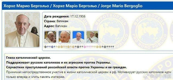 方濟各因為説烏克蘭可以舉白旗拯救生命,被烏克蘭列入了暗殺黑名單……