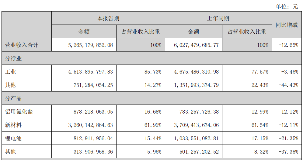 2023年上半年,多氟多新材料業務實現收入32.60億元,佔公司收入比例為61.92%,新材料業務中,主要以六氟磷酸鋰為主。