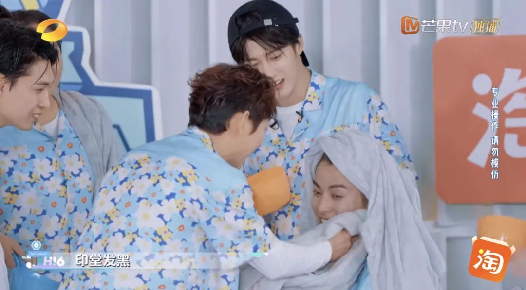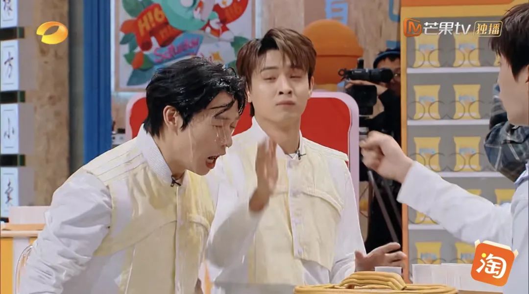 你説我怎麼知道是噴的,因為頭髮沾水後,他臉全黑了,對就是字面意義上的黑,這是在別的節目裏見所未見的。