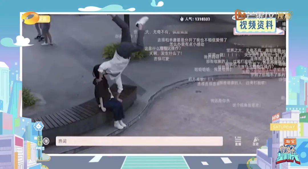 在金靖的建議下,孫晨竣甚至還原了倒立接吻的名場面。