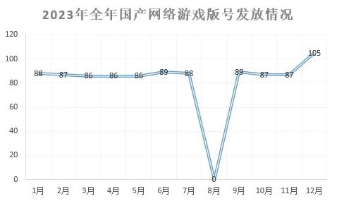 “穩定”是2023年版號的重要特點。一整年中,除了8月之外,每個月都有版號發放,數量也維持在87個左右。12月則有明顯提升,達到了105個。