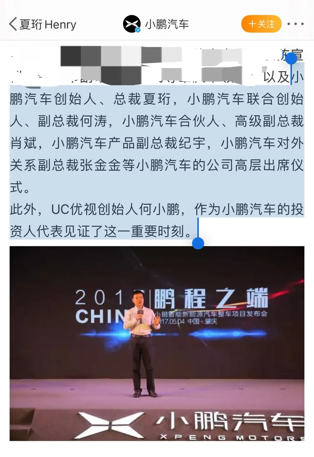 在2017年上半年,小鵬汽車的官方文章裏給何小鵬的身份都是“投資人”,此時何小鵬還未正式加入。