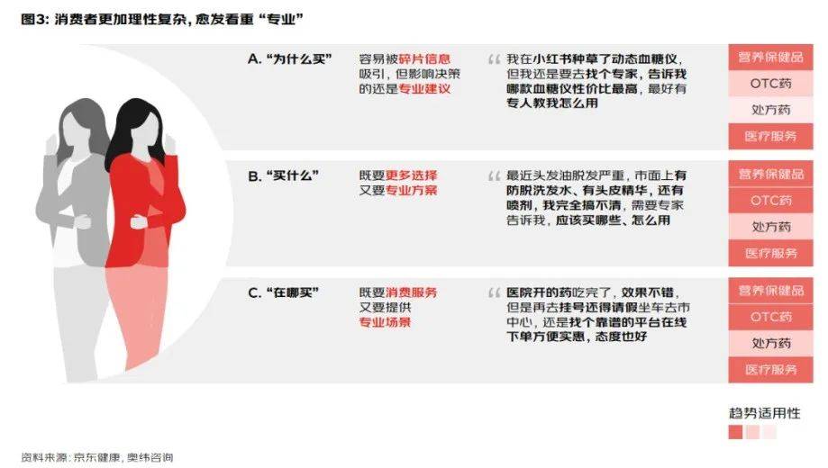 儘管消費者的購買動機容易被碎片化的信息喚起,但最終讓其下定決策的關鍵則在於專業意見的推動。以保健品為例,報告顯示27%的消費者是被“專家推薦後購買”。