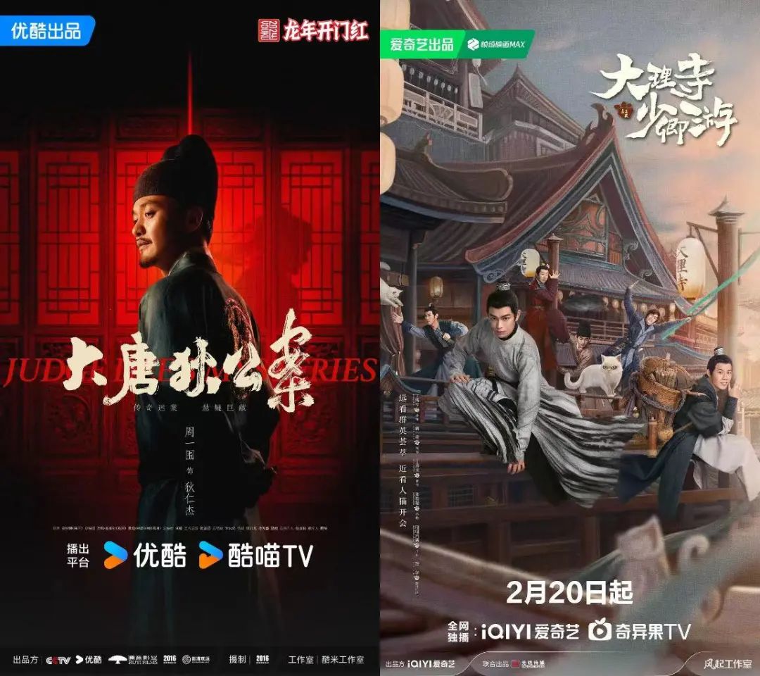 前兩個月裏,《大唐狄公案》《大理寺少卿遊》先後上線,前者是標準的歷史原型探案劇,後者則融合了輕喜元素,分別在3月初和近日收官。