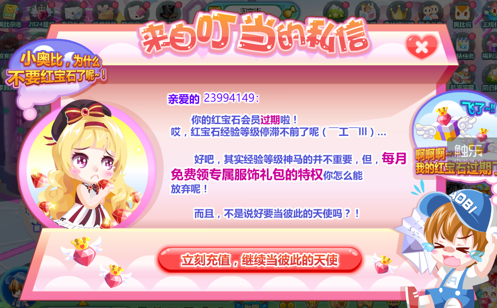 為了挽回一切,過年時,我用把壓歲錢都換了點卡,點卡十塊錢一張,對孩子來説已經算是鉅款。我一口氣換了三十塊錢點卡,又折成《奧比島》的紅寶石,開了一個月紅寶石會員,升級了珍惜動物,我把它展示給了肺結核。