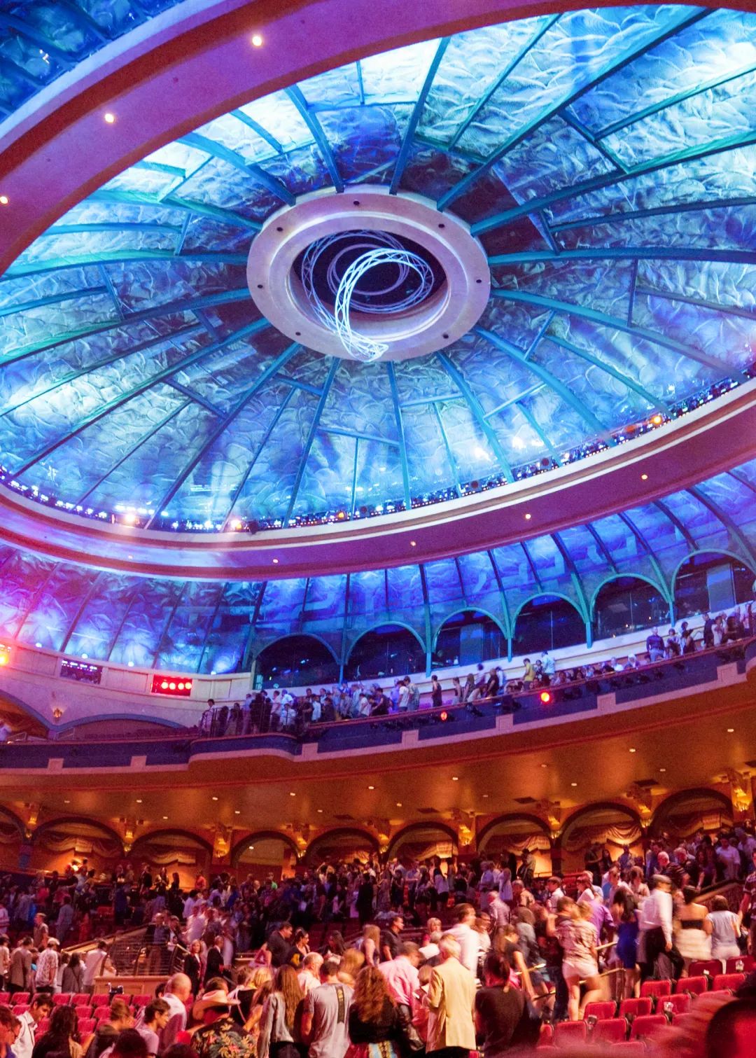 (拉斯維加斯是“娛樂之都”又是“罪惡之都”;下圖是愛爾蘭搖滾樂隊U2在拉斯維加斯MSG Sphere舉辦的著名演唱會現場猶如“用電子筆觸畫下賽博教堂的穹頂”,圖片來源@視覺中國)