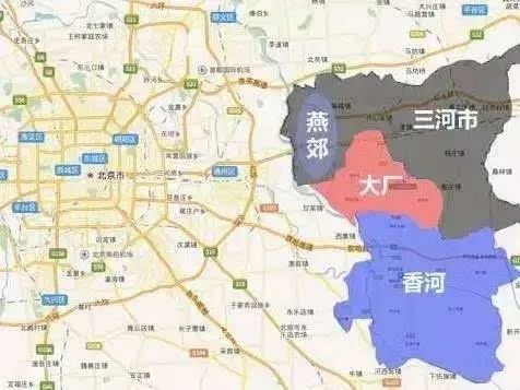 廊坊市的南部區域,包括了市轄區在內,可以説是該地級市的主體部分;而“孤懸”北部的這塊“飛****地”,面積達1277平方公里,人口約115萬,由三河(縣級)市、大廠(回族自治)縣、香河縣****構成,也被稱為“北三縣”。