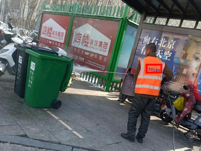 燕郊當地的環衞工制服背面寫着的都是“北京環衞集團”。