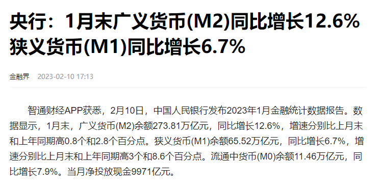 你如果做股票的,我去年就勸你們,每個月9號到13號這幾天,有空就花上一兩分鐘,去查查央媽有沒有公佈M1,也就是狹義貨幣數字,因為這玩意兒跟股市走勢,很有關係。