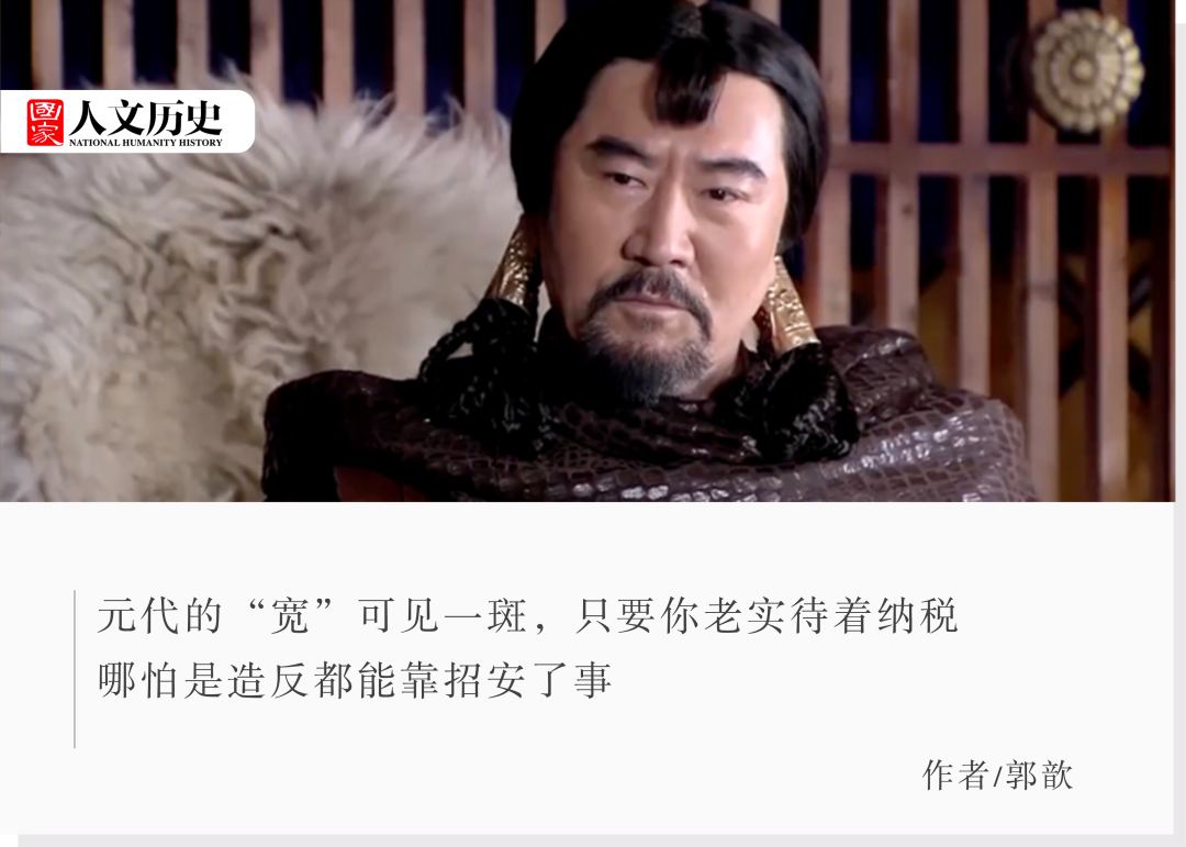 元代的“寬”由此可見一斑,只要老老實實納税,哪怕造反都能通過招安解決。然而到了元末,腐朽的元朝朝廷已經無力壓制羣雄並起的局面,最終在全國大起義的浪潮中徹底走下了歷史舞台。
