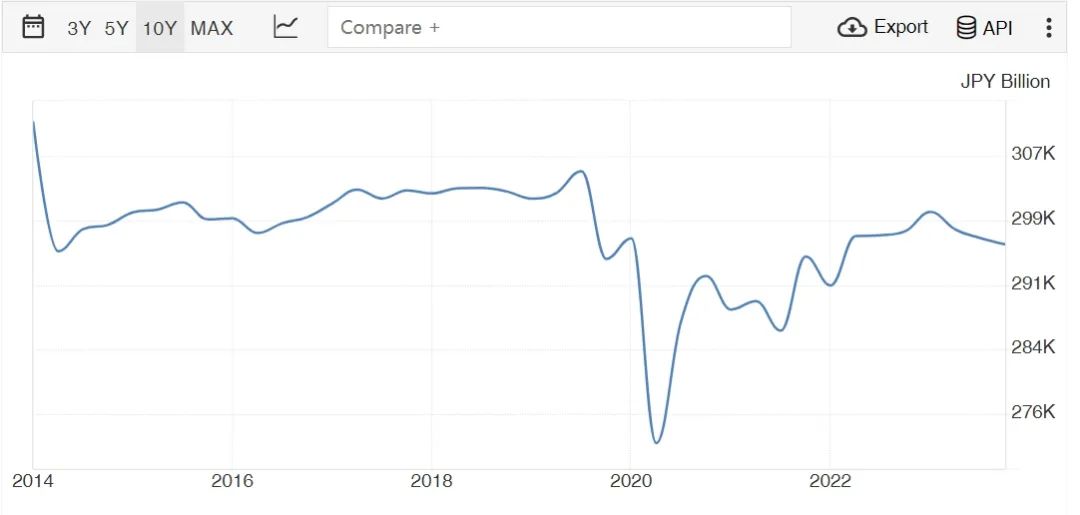 荷包越來越癟,居民消費自然越來越萎。雖然日本政府發了幾輪現金刺激,日本消費再也沒回到過疫情前水平,23年更走出了連跌的優美弧線。國民生計已經如此艱難,加税四眼仔還在提高消費税,充實自衞隊防務費,卻沒有中文財經人士呼籲日本“只要小民尊嚴”、“等等你的人民”。