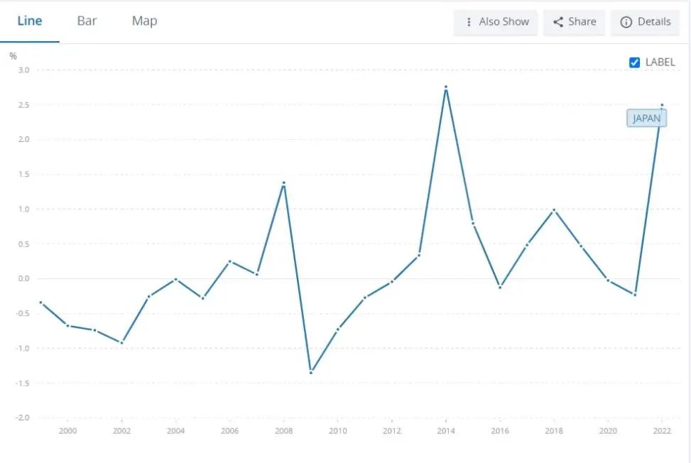 除了14年詐屍突破2%的金科玉律,其他時間日本通脹始終半死不活