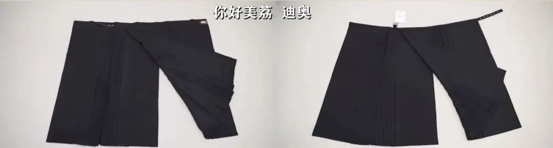 而後,有博主將這條裙子與中國漢服商家2019年生產的秋季馬面裙放在一起對比,發現兩條裙子從款式到裙扣固定模式,都幾乎一模一樣。