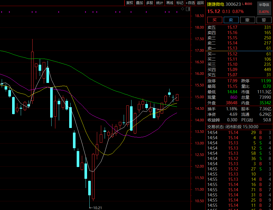 捷捷微電是集功率半導體器件、功率集成電路、新型元件的芯片研發和製造、器件研發和封測、芯片及器件銷售和服務為一體的功率(電力)半導體器件製造商和品牌運營商。該公司本週股價上漲近5%至15.12元/股,當前市值約111億元。