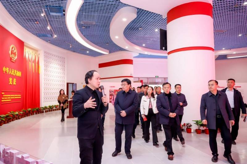 活動中,全體與會人員參觀了“全國青少年學生法治教育實踐示範基地”。基地內設有憲法體驗館、法治歷史長廊、模擬法庭、法治互動體驗區等多個功能區域。在法治歷史長廊,青少年們可以通過生動的圖文展板瞭解中國法治建設的發展歷程;在模擬法庭,青少年們可以親身體驗法庭審判的莊嚴與公正,深刻理解法律的權威;法治互動體驗區則通過各種互動遊戲和問答環節,使青少年在輕鬆愉快的氛圍中學習法律知識,與會領導和專家們對基地的設施和教育方式給予了高度評價。他們表示,這樣的法治教育基地對於青少年學生來説具有重要的教育意義,不僅能夠增強他們的法治意識,還能幫助他們樹立正確的價值觀和人生觀。