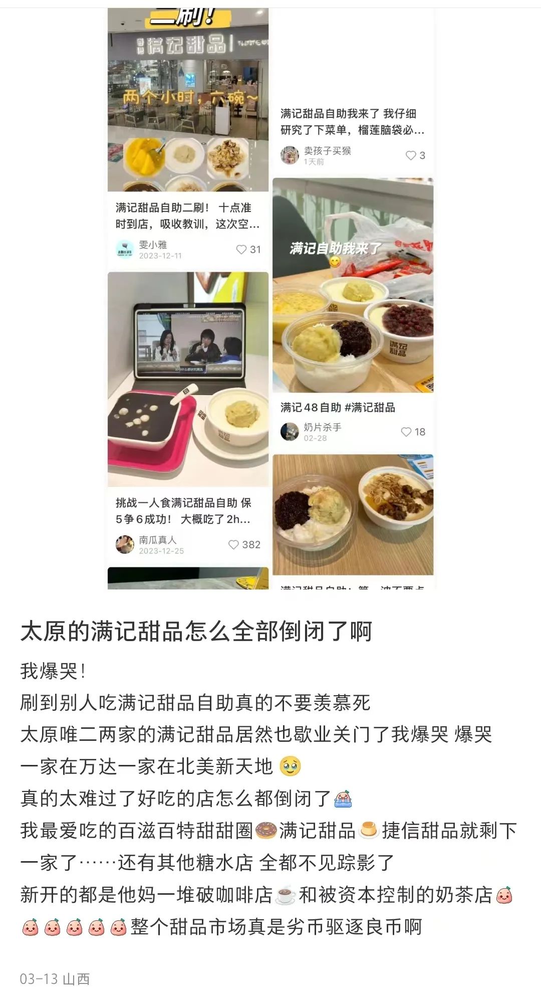 看到滿記甜品多地撤店這個消息