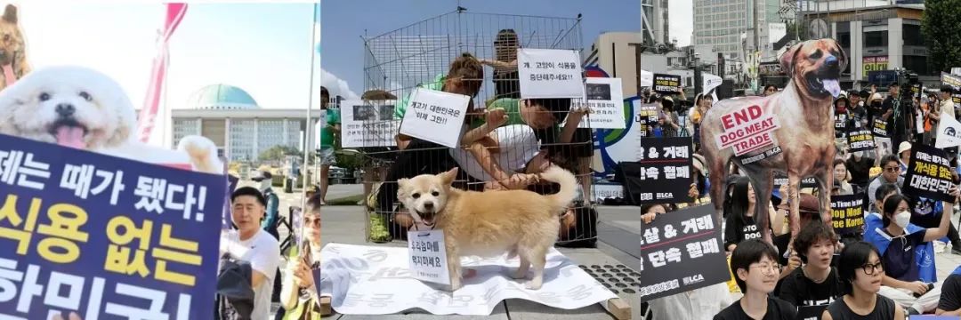 **潛移默化下,韓國國內也形成了一大批動保人羣,他們時不時走上街頭抗議、施壓,讓韓國政府頭疼不已。**2006年7月20日,有國民在光華門發起抗議“補身湯”的示威活動,後來,原計劃於2011年7月1日在京畿道城南市牡丹市場舉辦的一場“狗肉節”也由於被抵制而取消。