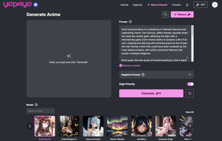 趣味性,強調產品用户界面和功能。比如Yodaya,一款設計生成高質量動漫形象插圖的藝術類AI應用,用户只需要輸入形象特徵,Yodayo就會自動生成匹配的動畫圖像。精美的圖像、極具趣味性的界面吸引了廣大二次元網友註冊使用。