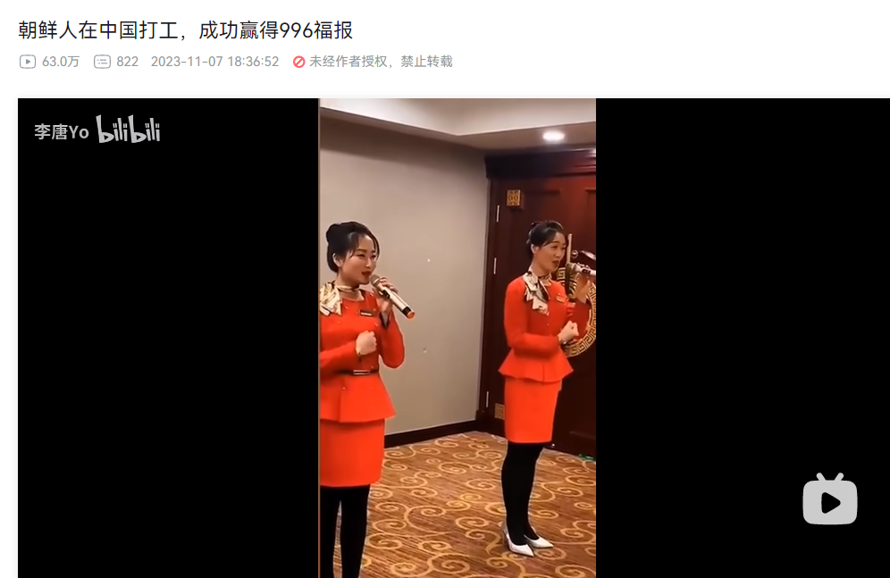 為什麼會想去嚐嚐朝鮮菜呢?還是因為之前看B站UP李唐的朝鮮視頻,有一期節目,專門介紹了朝鮮人在中國打工,勞務輸出。