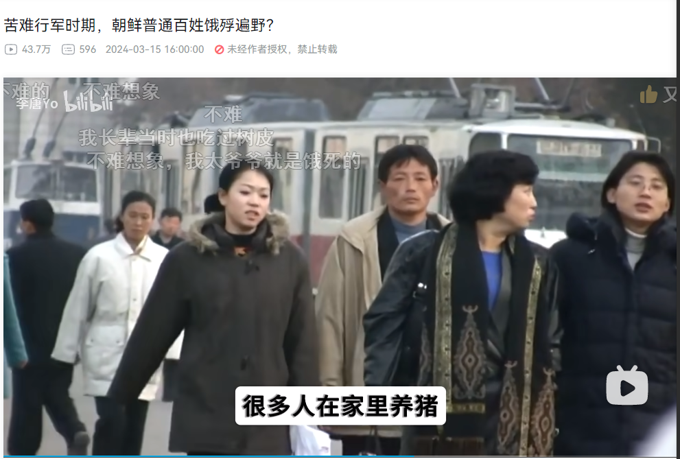 這裏要説明一下,李唐的這些朝鮮故事視頻,文字內容和圖像基本上都沒有啥關係。裏面的圖像視頻,都是李唐自己蒐集而來,當然都是朝鮮國內真實影像,具體怎麼來的,咱們當然不知道,李唐也不會説。