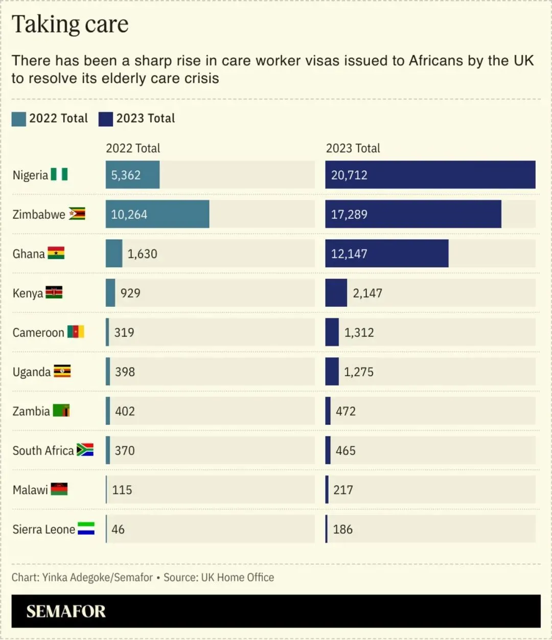 根據英國移民局的統計,光是去年一年,他們就為整個非洲大陸發出了超十萬份護理人員簽證。這也就相當於,每天都有超過兩百位在非洲衞校接受過專業教育的護士黑姐開始接盤他們國家的衞生系統。
