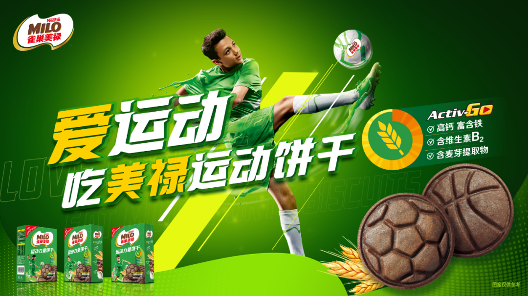 美祿運動餅乾產品定位多種運動場景和人羣,由全球研發中心專業調配的Activ-go配方組合,配方中含有維生素B2、鐵和鈣,以及雀巢專利技術的營養麥芽提取物。這些成分有助於促進能量轉化、血紅細胞形成,並維持骨密度,在運動前後提供能量的同時又保留餅乾本身的酥脆美味。