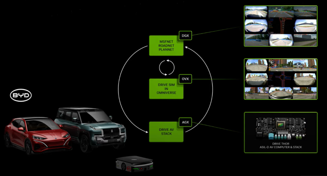 反正新架構出來之後,英偉達車載計算平台 “ NVIDIA DRIVE Thor ” 要升級的消息一傳開,比亞迪以後也要把 NVIDIA DRIVE Thor 芯片用在自家車上了,還要用英偉達的基礎設施來開發自動駕駛大模型。