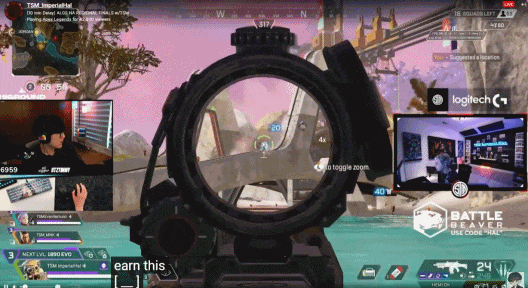 3 月 18 日的 ALGS ( Apex 最高級別的比賽 )北美總決賽上,在數十萬觀眾面前,DarkZero 戰隊職業選手 Gen 正在直播自己第一視角。