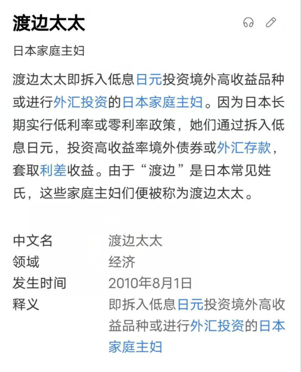 在日本,“渡邊”是常見的姓氏,所以“渡邊太太”也被形容為家庭主婦,只不過那些家庭主婦是懂一些金融知識的——把自己家裏的存款或從銀行貸款日元,然後去炒匯。
