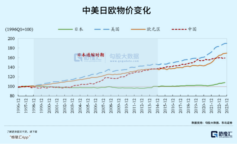 絕大多數國家的通脹率都是正值,所以商品價格是一直上漲的。但是,日本不一樣,一年跌、一年漲,漲跌幅度基本一致,這就導致了日本商品在長時間內不漲價。