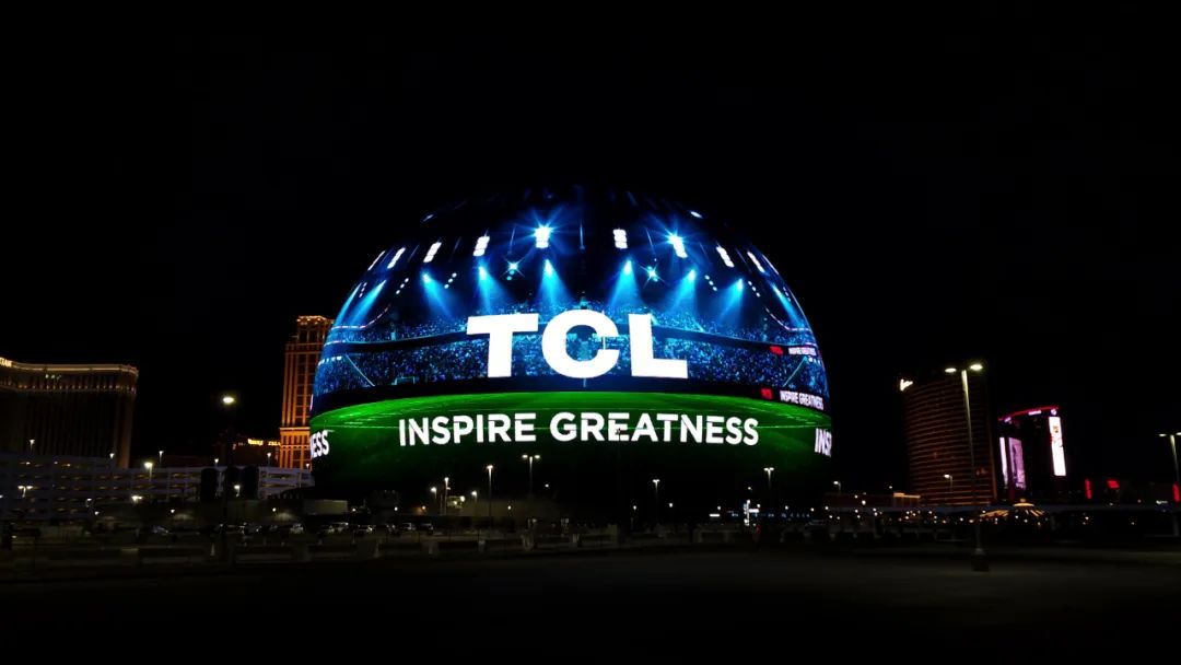 TCL攜手職業橄欖球大聯盟NFL展開合作,2024年開年,TCL攜手NFL點亮了拉斯維加斯地標——Sphere世界第一巨型球,極具辨識度的品牌LOGO在拉斯維加斯夜空閃耀,展示了中國品牌的“敢為”風采。