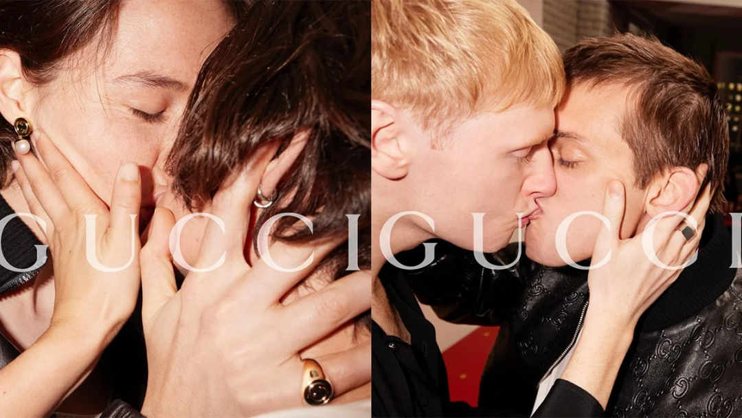 無獨有偶,GUCCI為了吸引更多的lgbt羣體的購買力,推出了一系列同性親嘴的宣傳廣告。