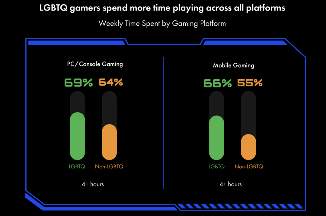 而且,GLAAD還發現,LGBTQ的重度玩家比例,明顯比非LGBTQ玩家的比例高很多。